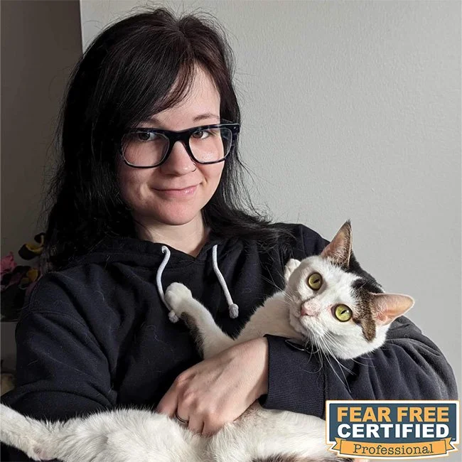 Kate is one of our veterinary technicians who joins us from the south shore. Her favorite color is orange and her favorite holiday is Halloween. Kate and her husband have 4 pets - their dog Luna, cat Holly Olive Princess Carol, and two rabbits named Potato and Reggie (as well as sharing custody of kitty named Noam with her in-laws). Kate has been working in the veterinary field for almost a decade and we are very grateful to have her. She loves all animals and wishes she could have more of her own!